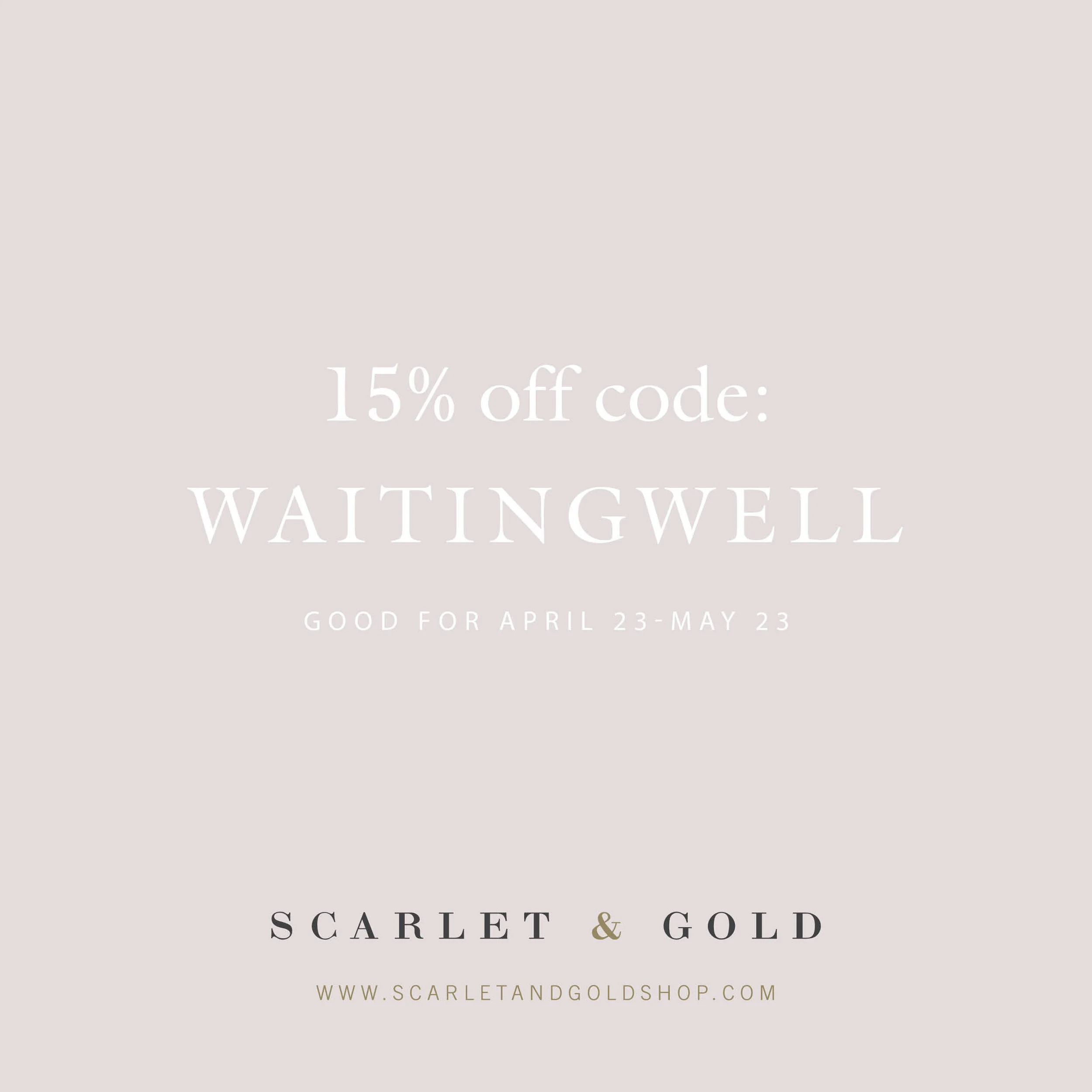 Use on any Waiting in Hope item within our store, limit one per customer, and not to be used towards shipping costs.